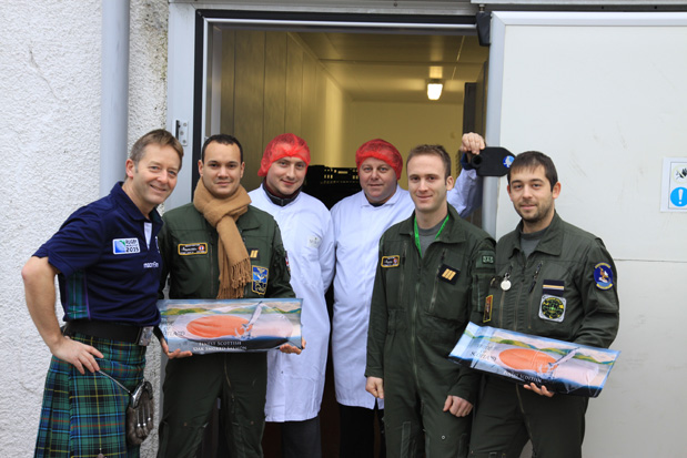 The French flyers visit nearby RAF Lossiemouth on exercise every December and it has now become a well-established tradition for Associated Seafoods to present them with delicious Scottish smoked salmon.